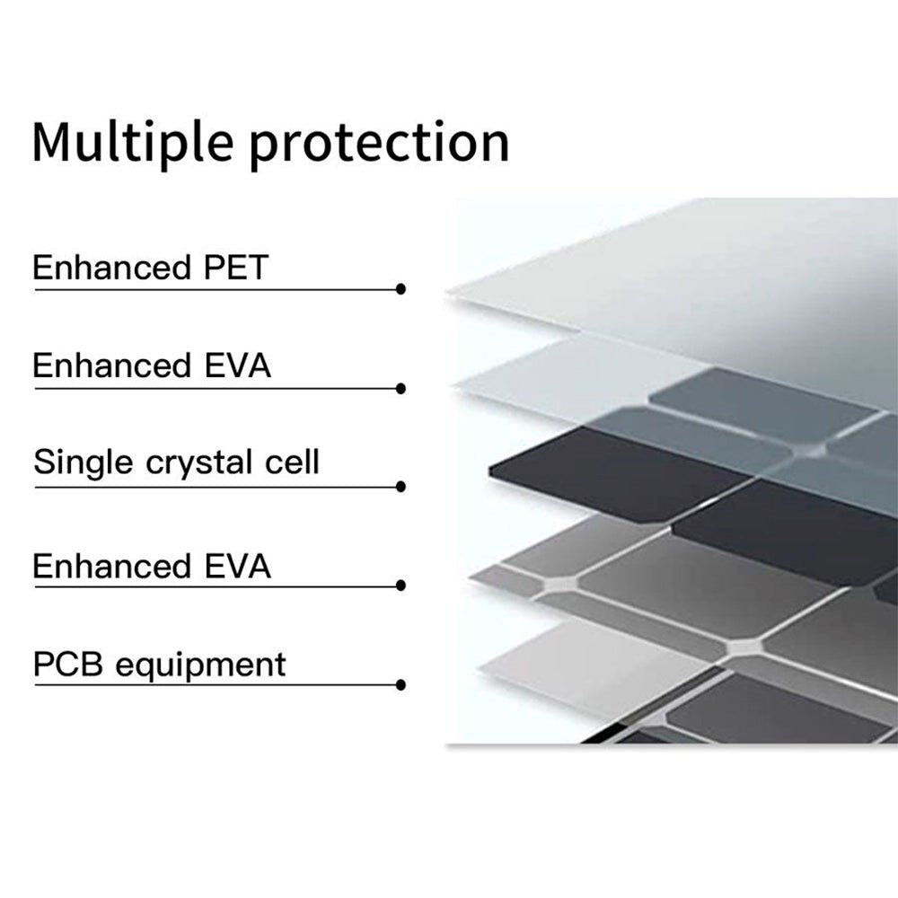 Solcellepanelet har en IPX4-klassifisering , noe som betyr at det er vanntett og tåler vannsprut fra alle retninger. Den er også laget med en monokrystallinsk celletype, som er kjent for sin høye effektivitet og pålitelighet.