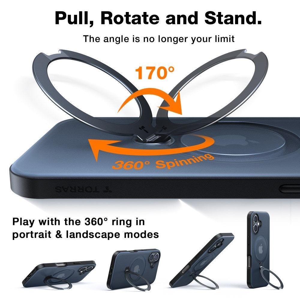 Torras iPhone 16-deksel – MagSafe-kompatibelt deksel med 360° ringstøtte