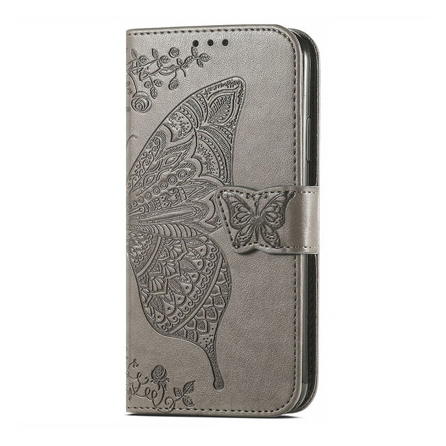 Motorola Moto E7 Power / E7i Power Leather Flip Cover m. Lommebok - Sommerfugl - Grå er i restordre og vil bli sendt så snart det er på lager igjen.
