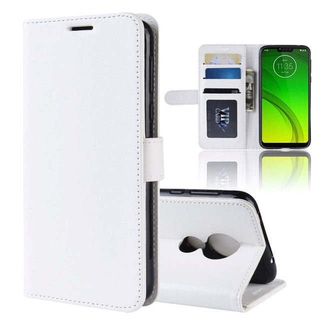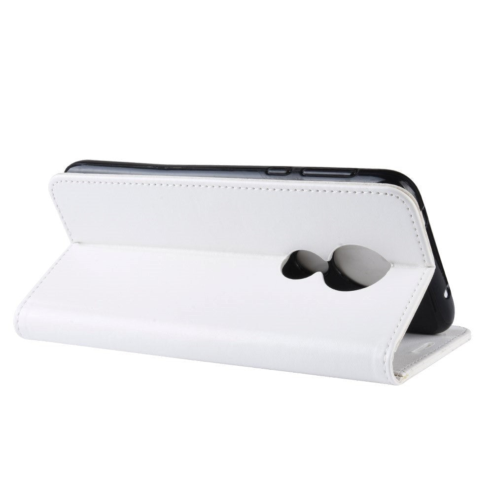 Motorola Moto G7 Power skinnende skinndeksel m. Lommebok hvit