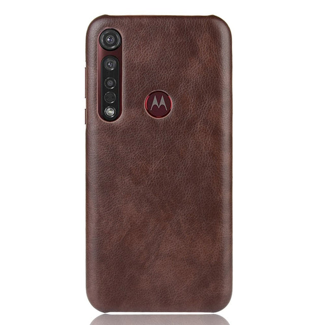 Mototola Moto G8 Plus Litchi Grain Skinnkledd plastdeksel - Brun