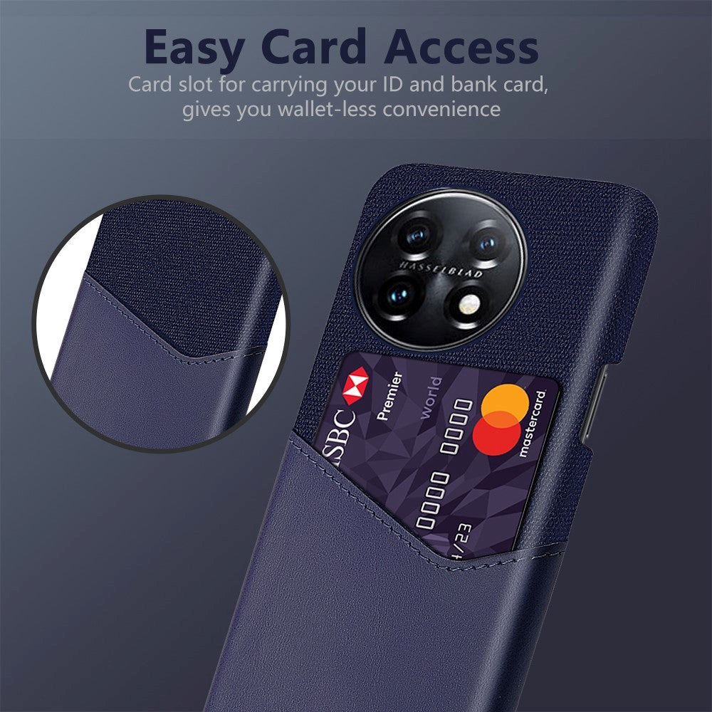 OnePlus 11 Bakdeksel i lær og tekstil m. Kortlomme - Blå