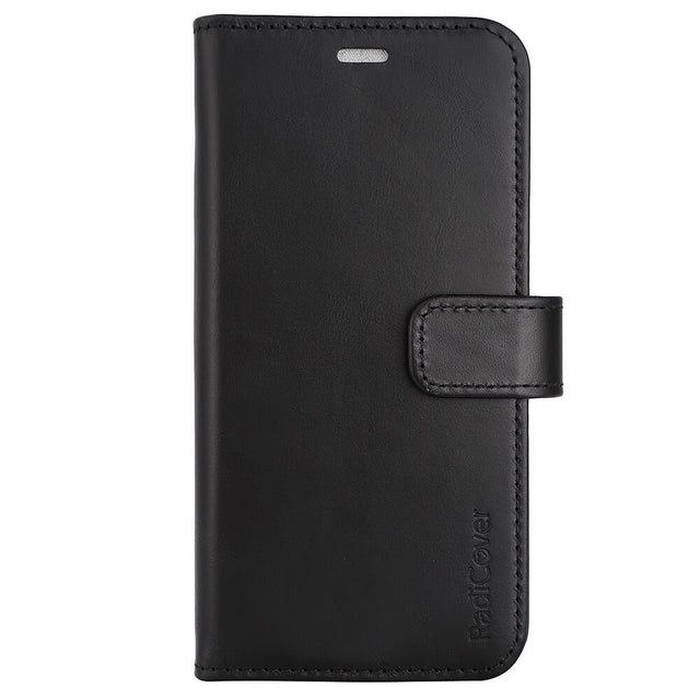 RadiCover Exclusive 2-i-1 iPhone 14 / 13 - Flip-deksel i ekte skinn - 86 % strålebeskyttelse - Svart er i restordre og vil bli sendt så snart det er på lager igjen.