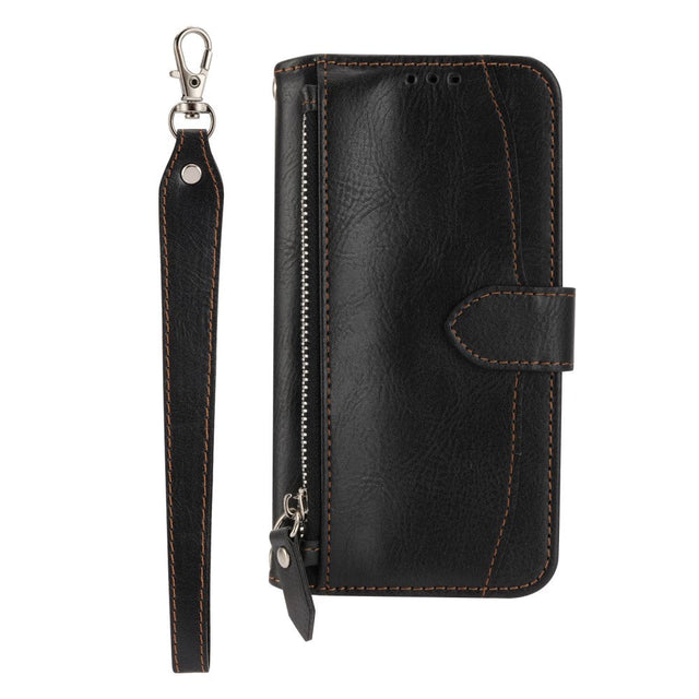 Samsung Galaxy A25 (5G) Flip-deksel i lær m. Glidelåslomme og stropp - Svart er i restordre og vil bli sendt så snart det er på lager igjen.