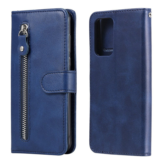 Samsung Galaxy A52 (4G / 5G) lærdeksel m. Glidelåslomme - Blå