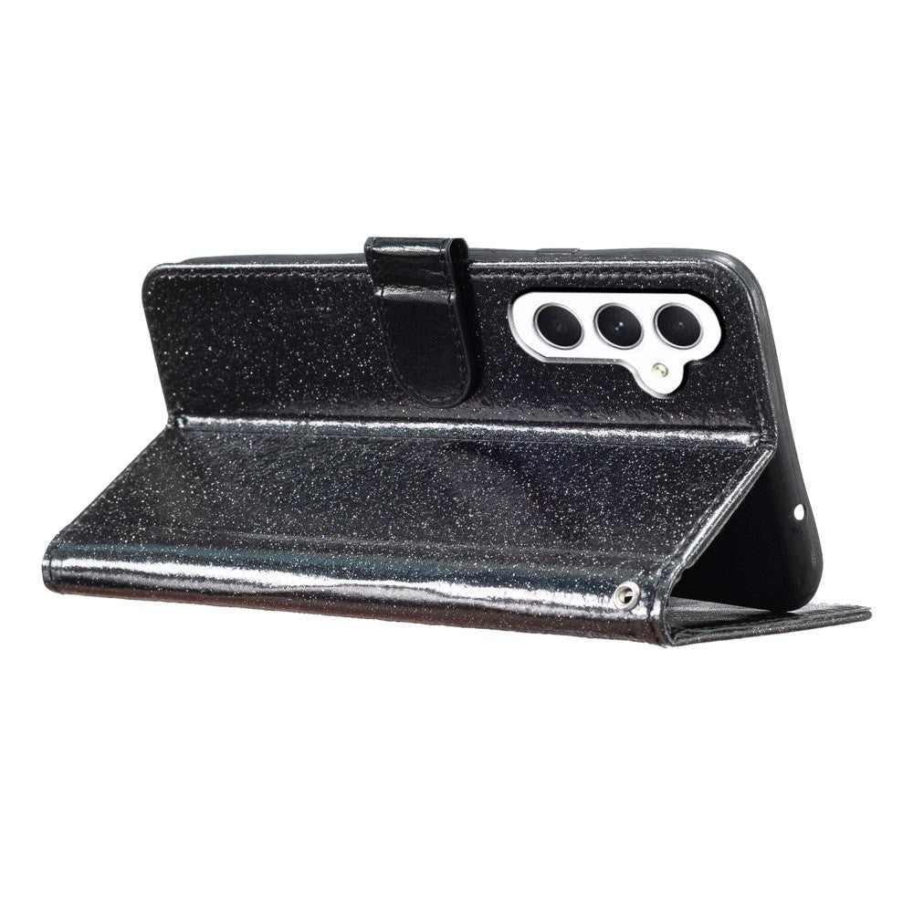 Samsung Galaxy A55 (5G) Flip-deksel i lær m. Lommebok og stropp - Glitter - Svart