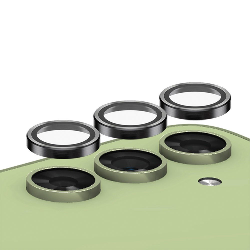 Her får du et beskyttelsesglass til Samsung Galaxy A55 (5G) kameralinse slik at du kan beskytte telefonens kamera mot støt, støt og riper. Du får en kamerabeskyttelse til Samsung Galaxy A55 (5G) som er laget av kraftig herdet glass, som er et materiale som beskytter bedre enn vanlig glass. Denne kameralinsebeskyttelsen består av slanke optiske ringer, hvor selve objektivet er laget av ripe- og støtsikkert glass og rundt linsene er det en sort aluminiumsramme. Denne kombinasjonen gir deg derfor virkelig god beskyttelse for kameralinsene.