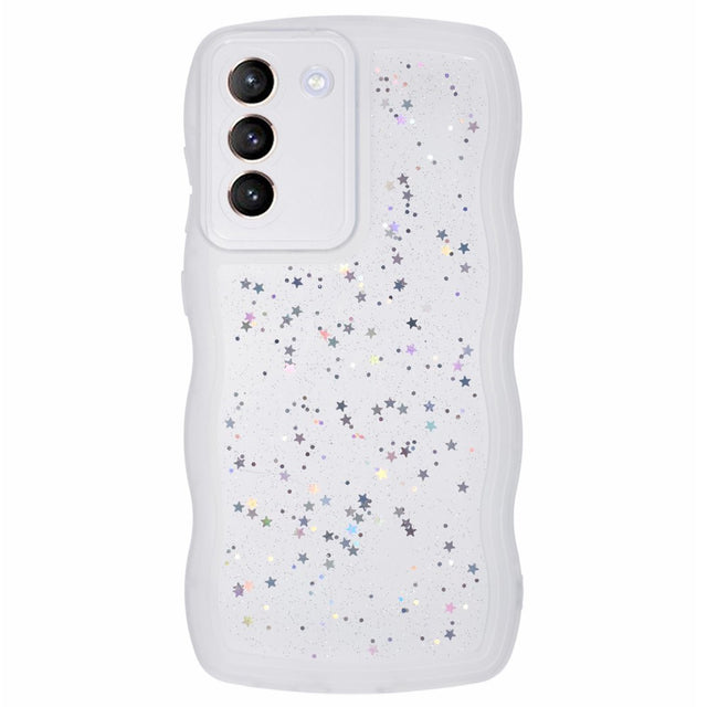 Samsung Galaxy S22+ (Plus) - EIDERWOOD Fleksibelt bølgede bakdeksel i plast m. Glitter - Gjennomsiktig / Hvit er i restordre og vil bli sendt så snart det er på lager igjen.