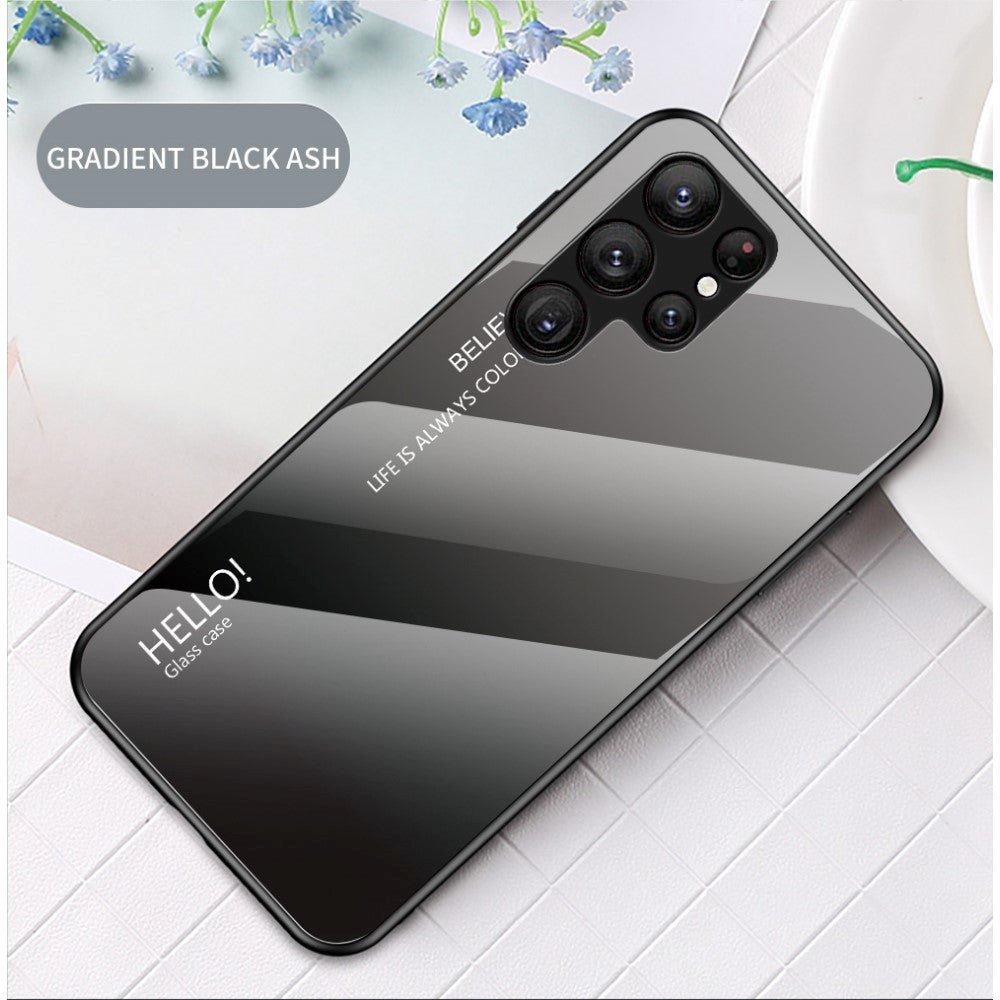Samsung Galaxy S23 Ultra deksel m. Glass Back - Hello - Grå / Svart