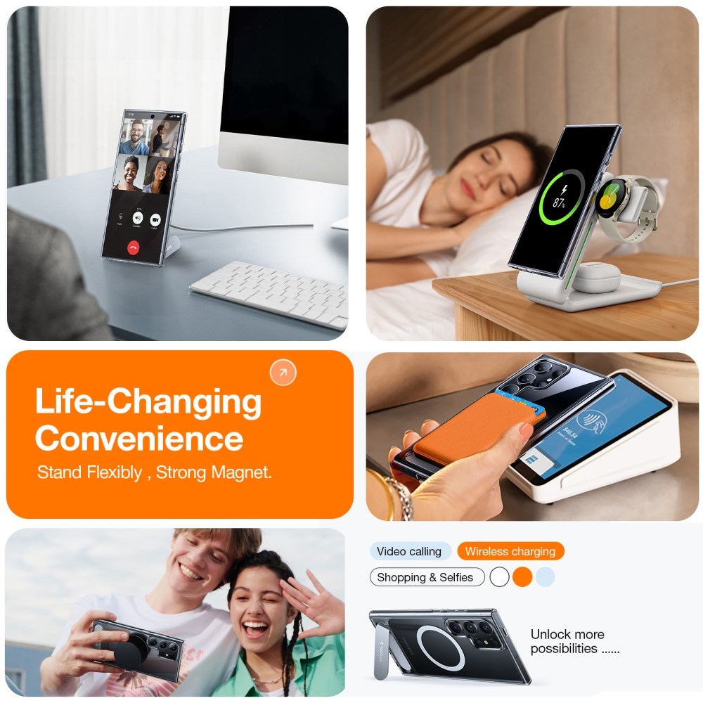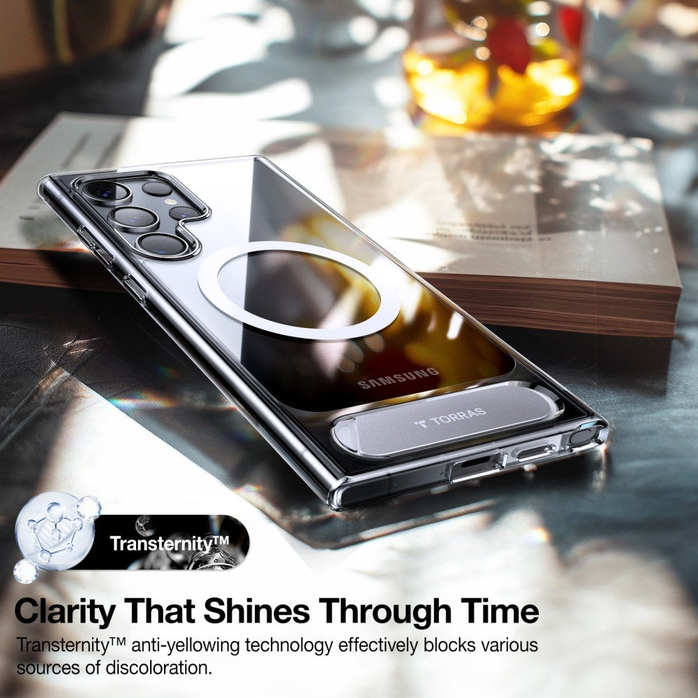 Samsung Galaxy S24 Ultra - TORRAS Hybrid Deksel m. Stativ - MagSafe-kompatibel - Gjennomsiktig