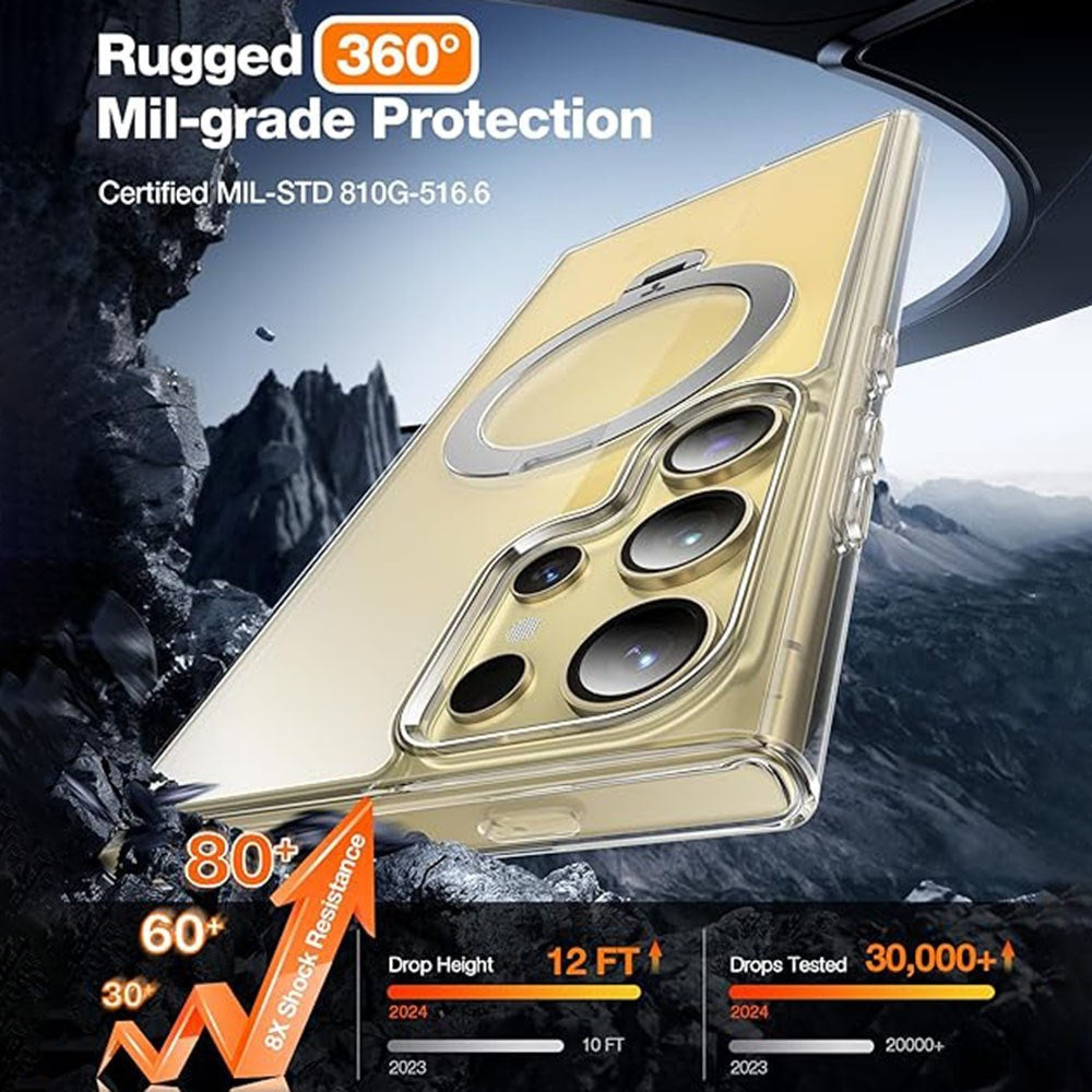 Samsung Galaxy S24 Ultra - TORRAS Hybrid Deksel m. Roterende støtteben - MagSafe-kompatibel - Gjennomsiktig