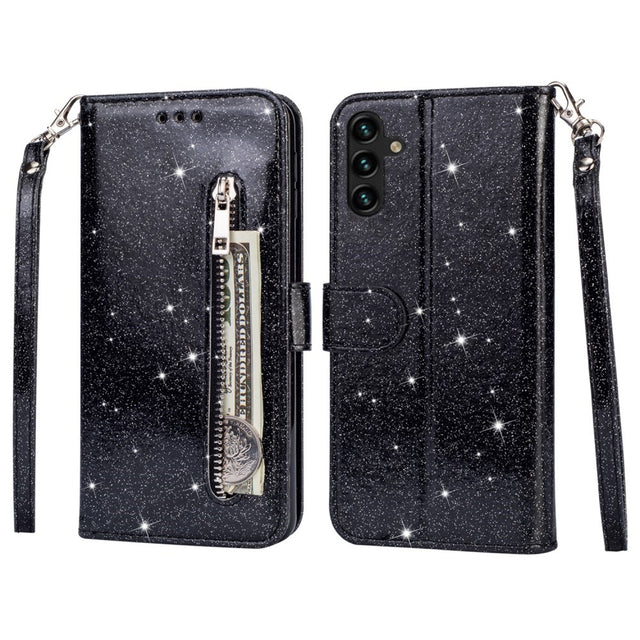EIDERWOODs Glitter Flip-deksel til Samsung Galaxy S25 tilbyr både elegant beskyttelse og praktisk funksjonalitet. Den er laget av vegansk lær og fleksibel plast, som sikrer solid fallbeskyttelse og støtdemping. Det glitrende designet fanger lyset og gir et skinnende, stilig utseende.
