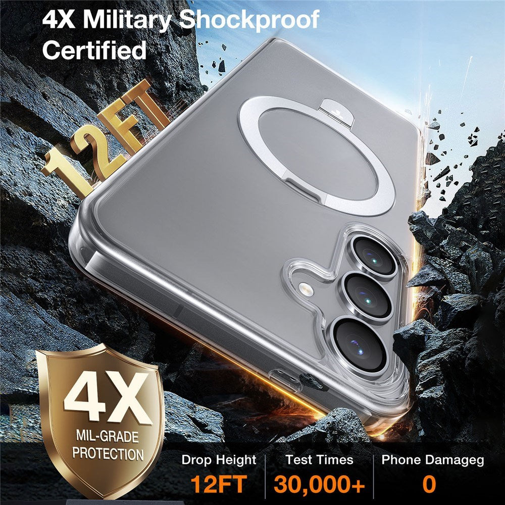 Dette stilfulde cover i hårdt og fleksibelt plast giver sikkert greb og elegant profil. Det foldbare støtteben kan justeres op til 120 grader og tåler over 30.000 foldninger, mens stærke magneter sikrer MagSafe-kompatibilitet til hurtig trådløs opladning.