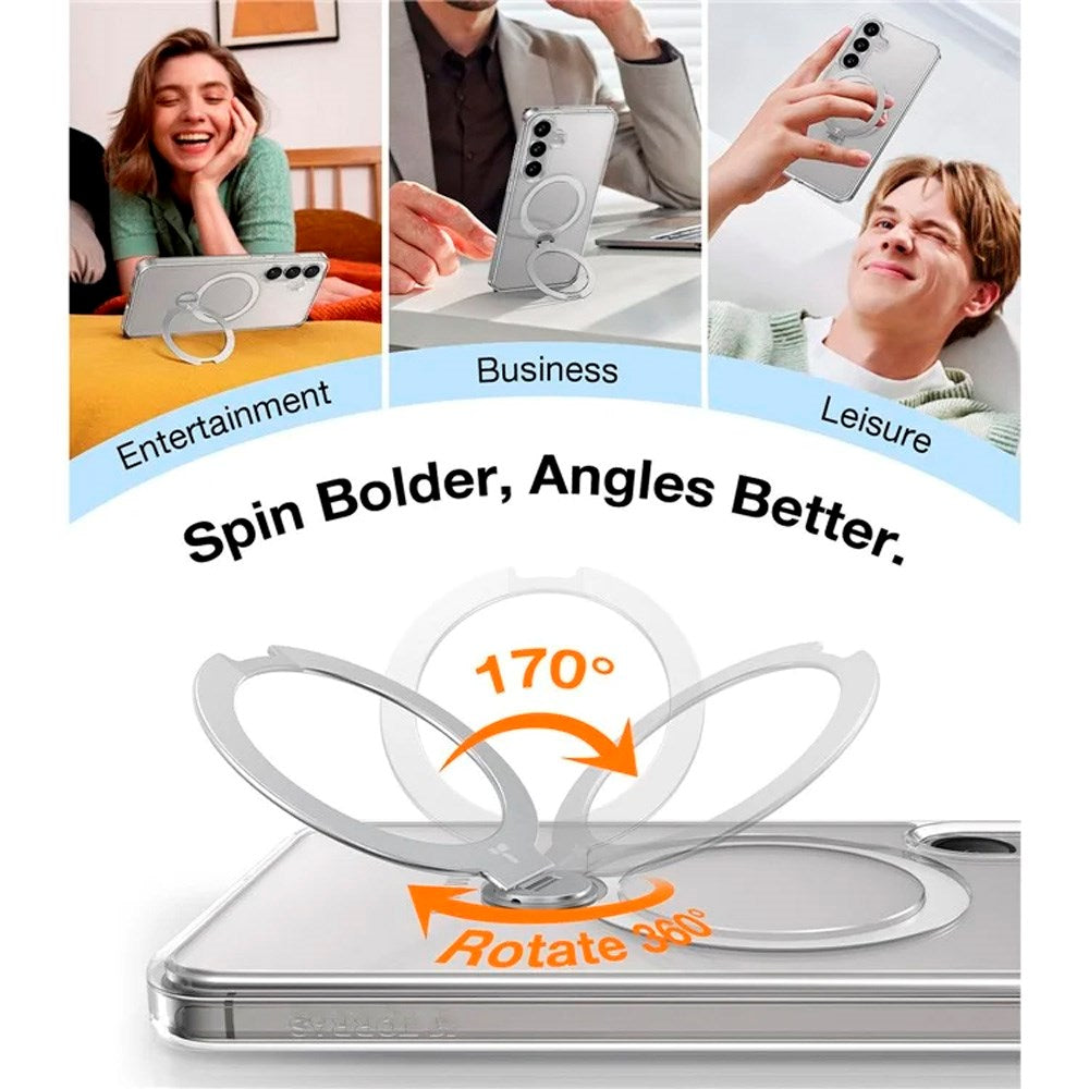 Den 360° roterende støtteringen lar deg nyte håndfri visning, mens innebygde 18N-magneter sikrer MagSafe-kompatibilitet slik at du enkelt kan lade og bruke tilbehør uten å fjerne dekselet.