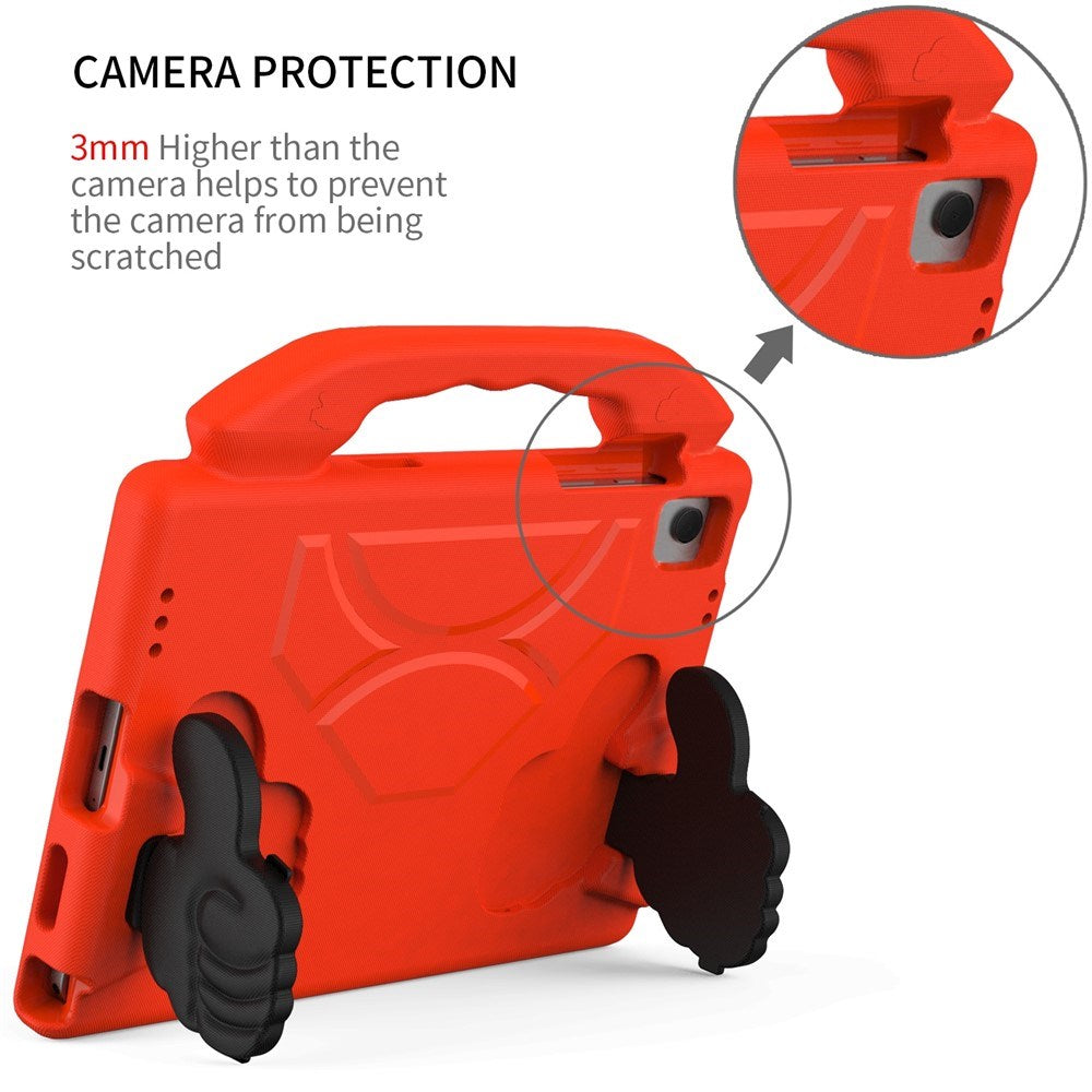 Coveret giver solid sikkerhed mod stød, ridser og uheldige tab, og det er ideelt, når dit barn vil se videoer, spille spil, læse eller lave lektier. De fleksible “tommelfingre” kan foldes ud og fungere som en stabil stander, så tabletten kan stå selv. Derudover har coveret et praktisk bærehåndtag, som gør det nemt og sikkert for barnet at transportere tabletten rundt. Det slidstærke design kan uden problemer modstå den hårde brug, der ofte følger med børnehænder.