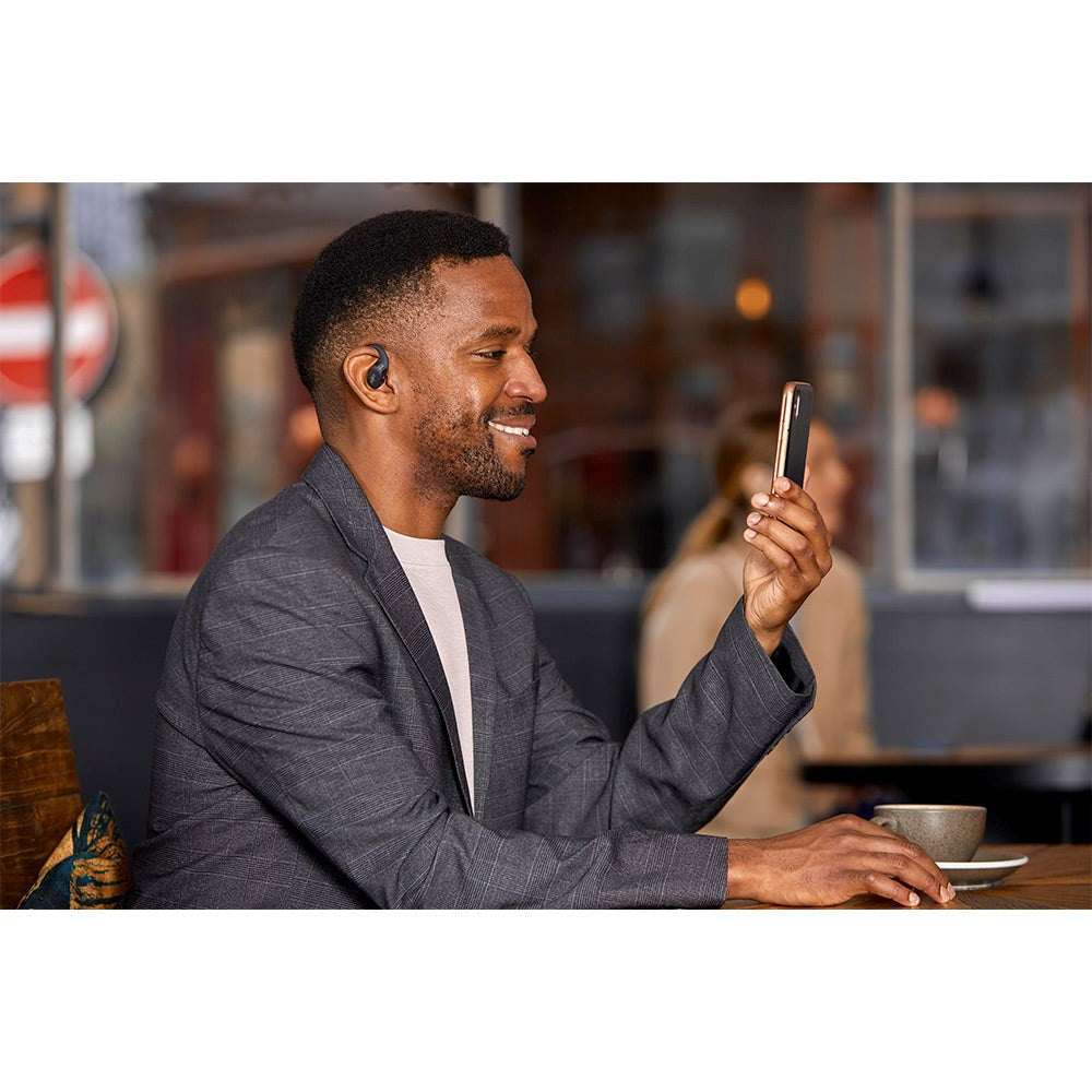 Opplev det unike OpenFit-designet selv. Ved å la ørene være åpne og frie, unngår du det tradisjonelle "in-ear"-designet og kan nyte musikken samtidig som du kan høre verden rundt deg. De ergonomiske ørekrokene gir en perfekt passform rundt ørene og sørger for at headsettet holder seg sikkert på plass.