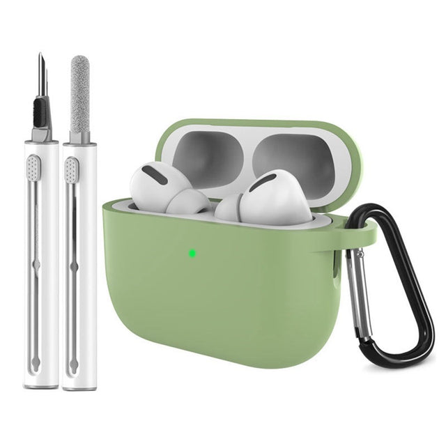 Silikone Cover til Apple AirPods Pro (3. gen.) - Karabinhage & Rengøringspen - Matcha Green