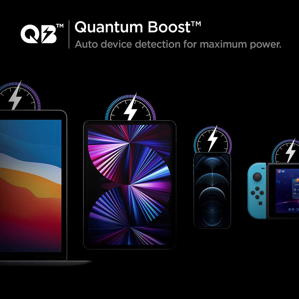 Laderen støtter 45W lading med én USB-C-port og 20W med den andre USB-C-porten, slik at du raskt kan slå på enheten.