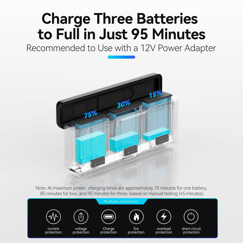 TELESIN batteri opladningscase til DJI Osmo Action 3, 4 og 5 Pro er en kompakt og effektiv løsning til at oplade og organisere dine batterier.