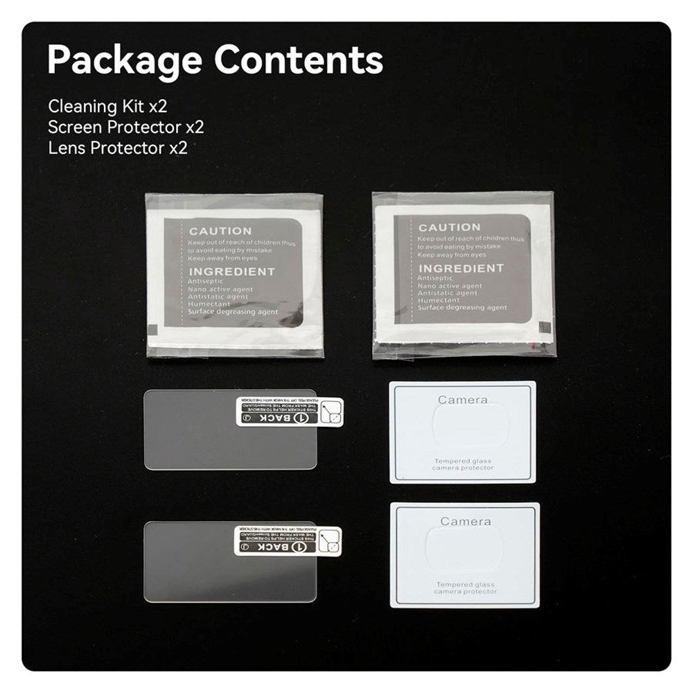 Sættet inkluderer to sæt film og rengøringskits for nem udskiftning, og den præcise pasform sikrer nem installation uden luftbobler.