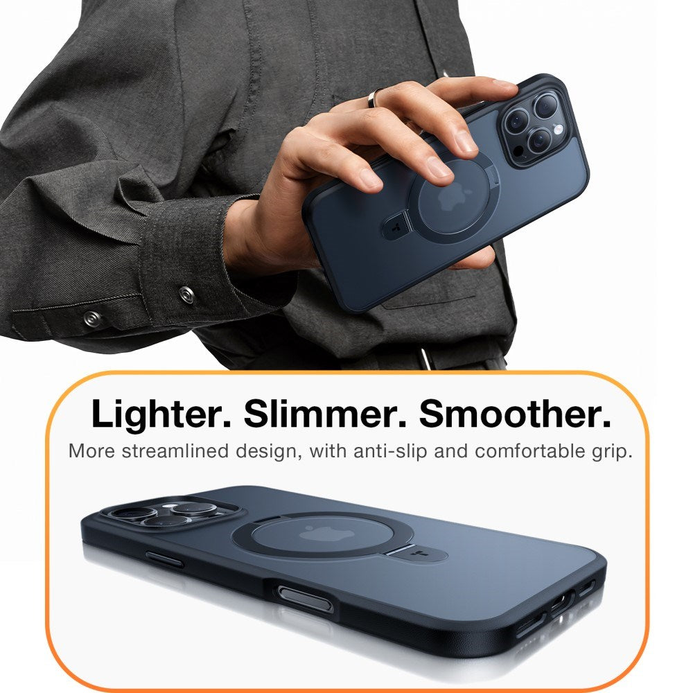 TORRAS Guardian Ostand Series iPhone 16 Pro-deksel med MagSafe og Kickstand – fleksibelt plast og støtdempende deksel