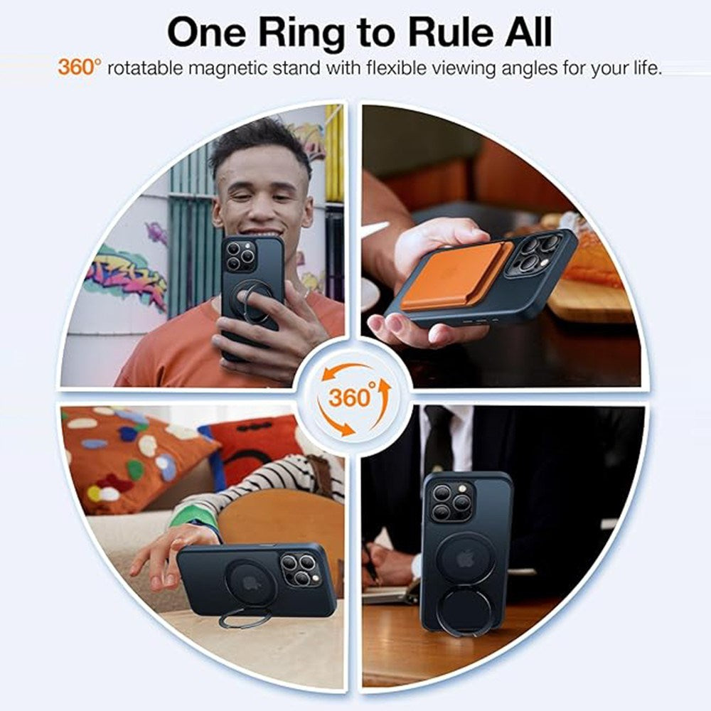 Coveret har en indbygget magnetisk ring, som gør det fuldt MagSafe-kompatibelt og fungerer som en 360° kickstand til håndfri visning.
