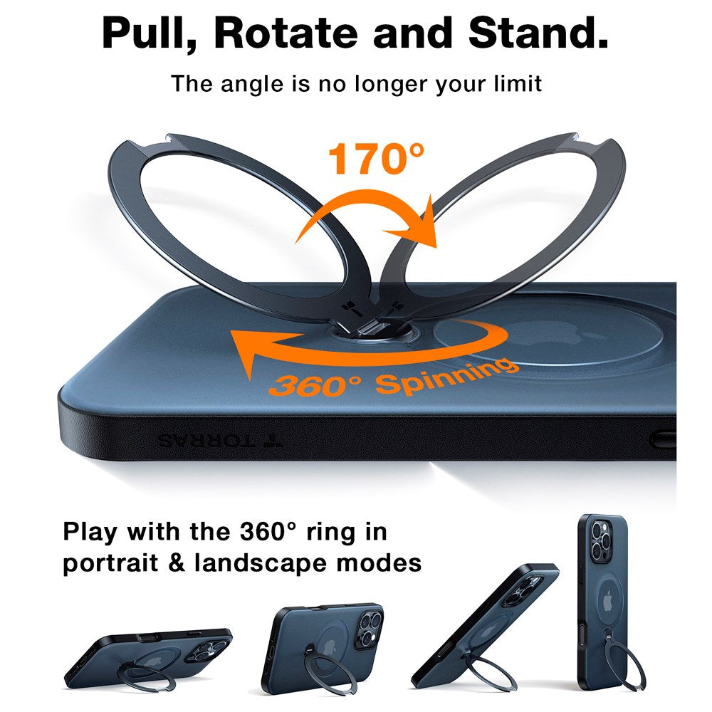 TORRAS - iPhone 16 Pro Max - Hybrid Plastik Cover m. Ståfunktion - MagSafe Kompatibel - Sort er i restordre og vil bli sendt så snart det er på lager igjen.
