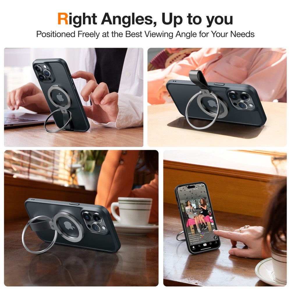 Bred kompatibilitet : Designet for å fungere med MagSafe-kompatible deksler; En metallring for ikke-magnetiske deksler er inkludert, slik at du kan glede deg over støtte- og grepsfunksjonalitet uten problemer.