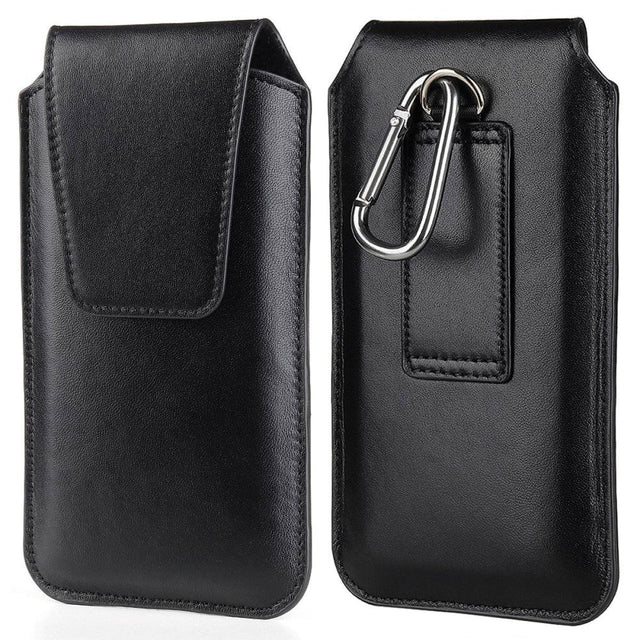 Universal lærveske for mobil m. Karabinkrok – svart (maks. mobil: 170 x 85 mm)