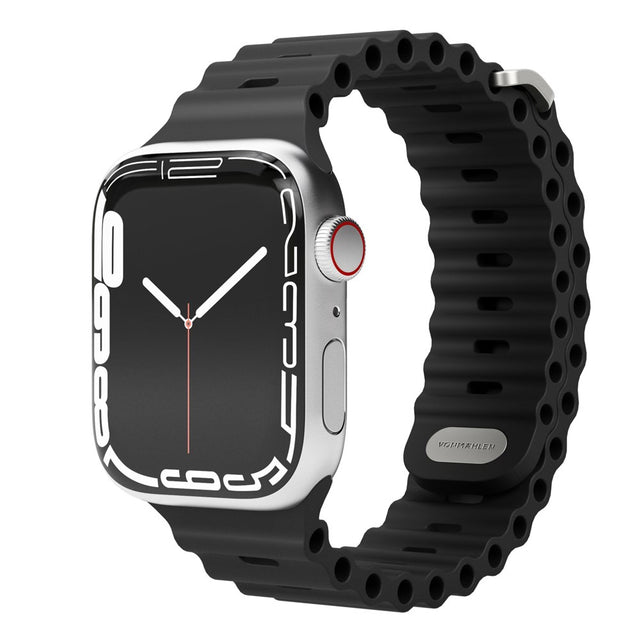 Vonmählens Ocean Silicone Strap kombinerer stil og komfort for å gjøre smartklokkeopplevelsen din enda bedre. Den er lett og komfortabel, perfekt for enhver anledning, og den moderne designen gir litt ekstra stil til håndleddet. Stroppen er laget av kvalitetsmaterialer som myk resirkulert silikon og slitesterkt rustfritt stål.