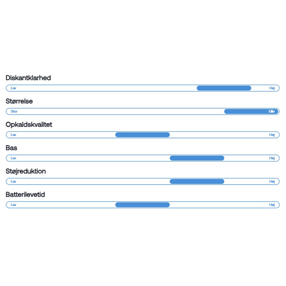 Nyt musikk i opptil 5 timer. Til tross for den lille utformingen av hodetelefonene er det fortsatt musikk i lange perioder.