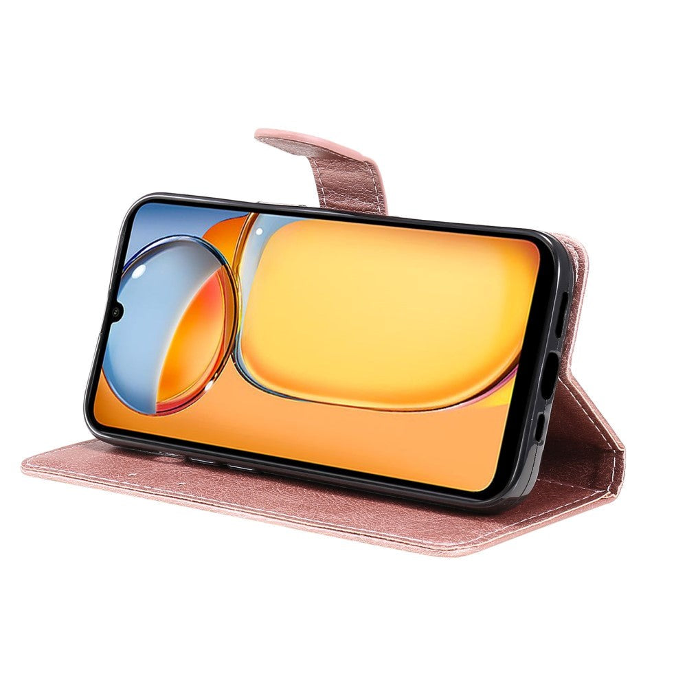 Xiaomi Poco C65 / Redmi 13C Leather Flip Cover m. Lommebok og stropp - Rose gull