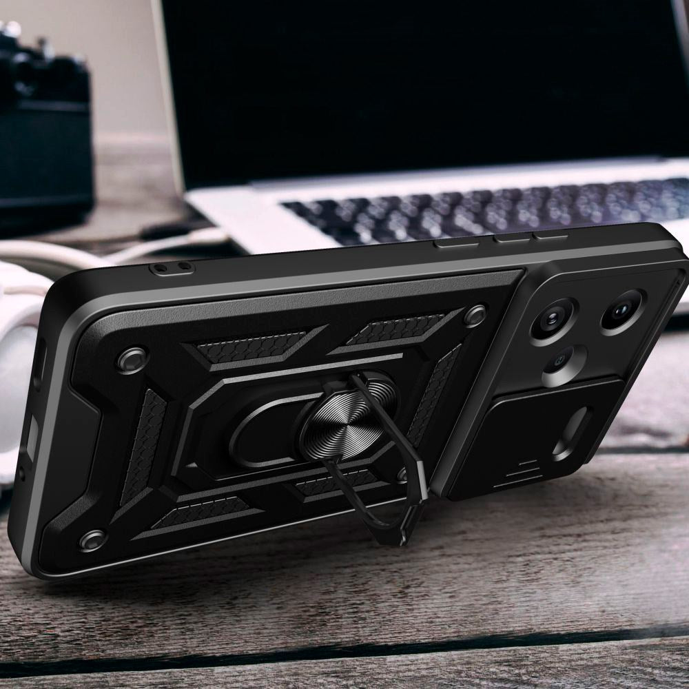 Xiaomi Redmi Note 13 Pro+ (pluss) Tech-Protect Camshield Cover m. Magnetisk fingerring og stativfunksjon - svart