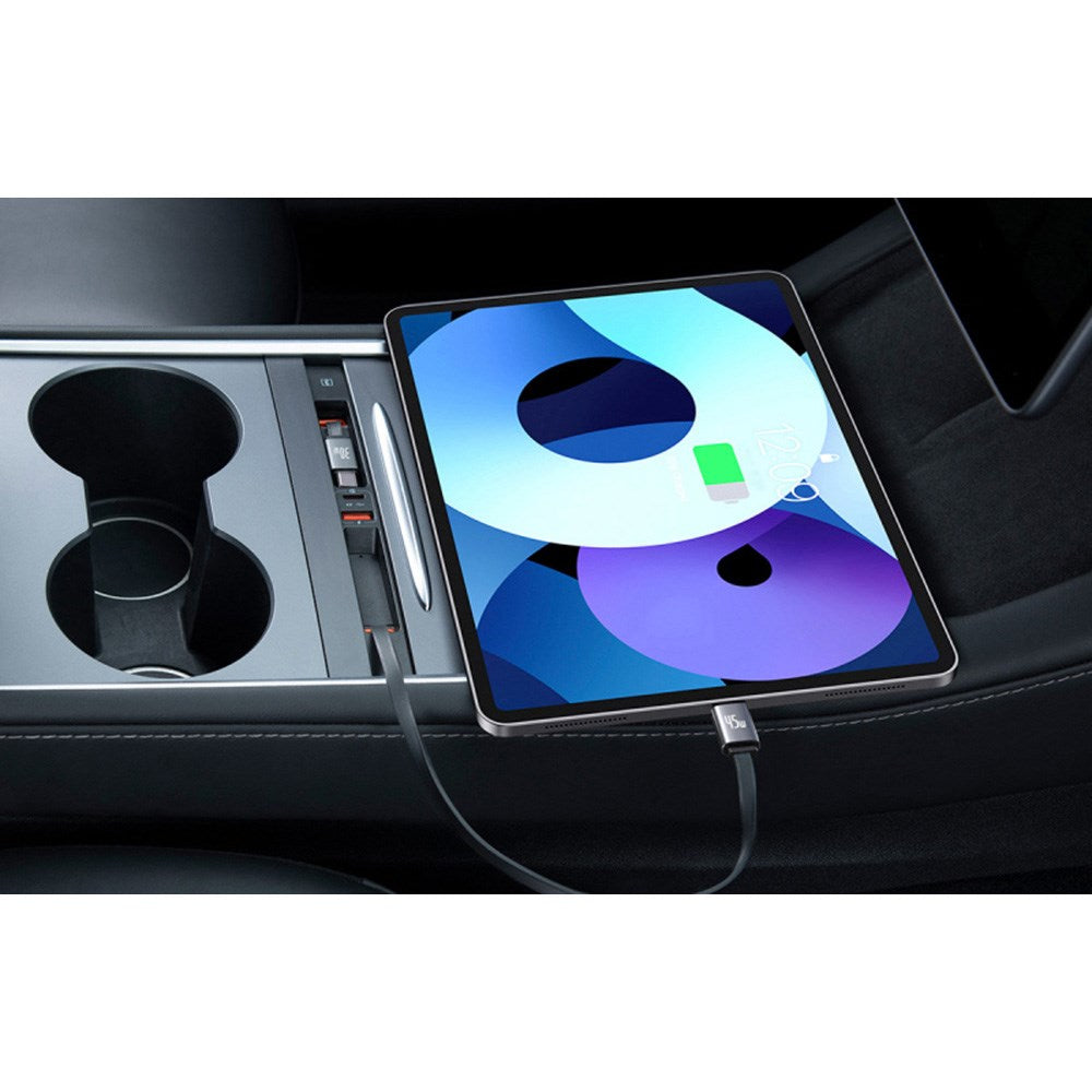 Baseus T-Space Opladningshub m. Udtrækkelig USB-C & Lightning Kabel til Tesla - Sort6932172654153 |