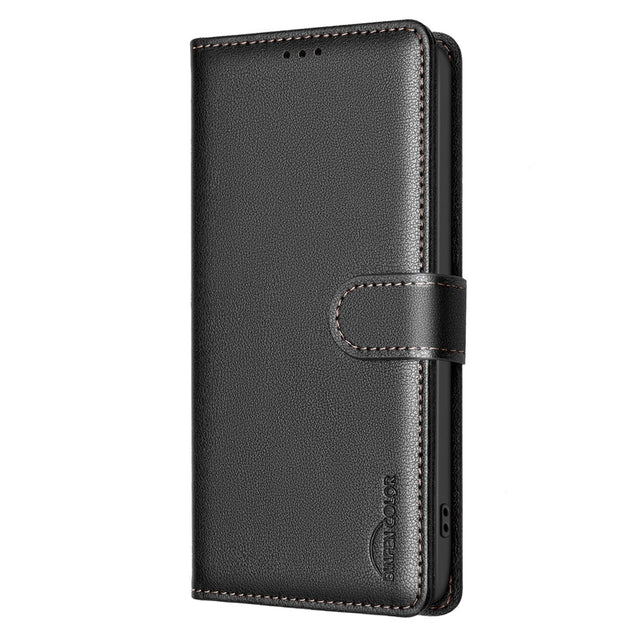 BINFEN Honor X5c Plus Imiteret Læder Flip Cover m. RFID Blokering og Kortholder - Sort