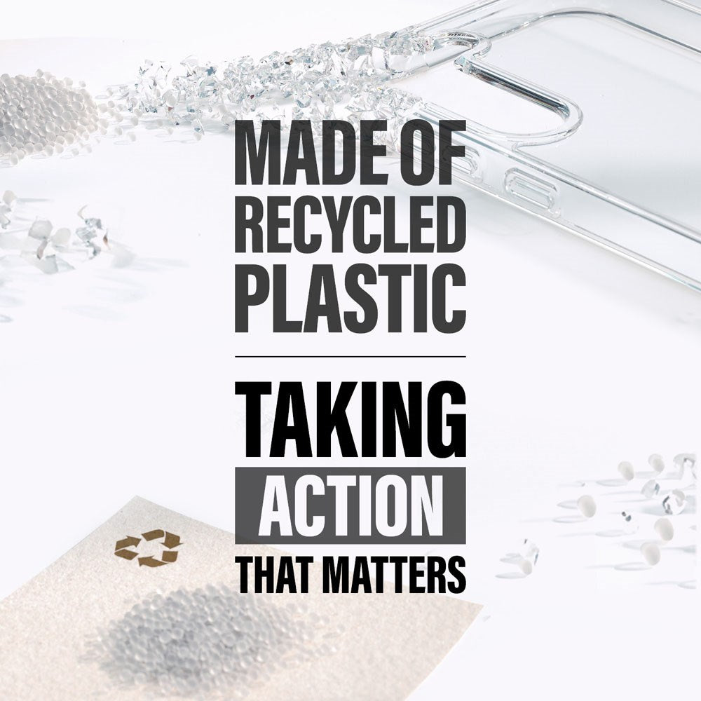 Dette iPhone 16 Pro Cover er lavet i genanvendeligt plast og har åbning for højtaleren, kameraet og blitzen samt mulighed for at tilslutte oplader, mens coveret er på.