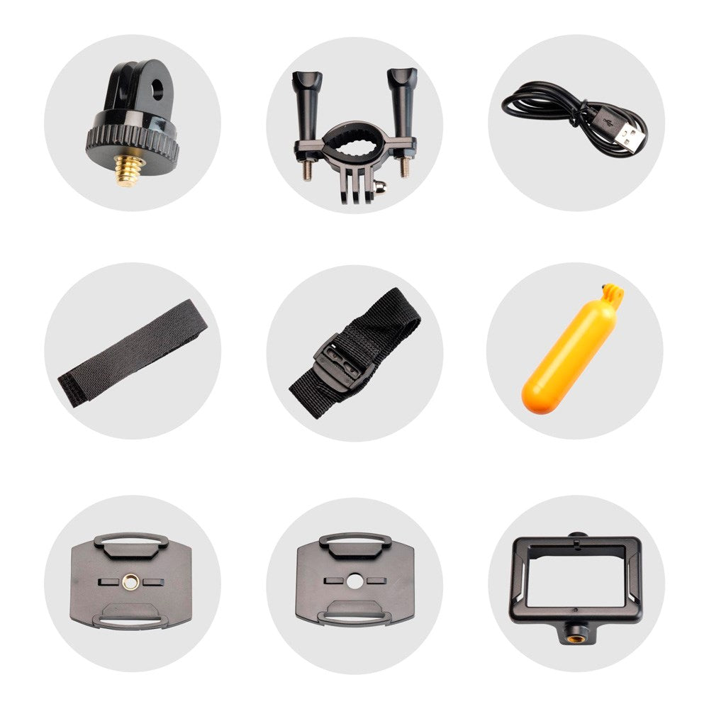 Uanset om du dykker under vandet, sejler i kajak eller tager en svømmetur, holder det vandtætte etui med IP68-klassificering kameraet sikkert tørt og funktionelt. Det medfølgende tilbehør, såsom flyder, beslag og stropper, gør det let at fastgøre kameraet på hjelm, cykel, board eller rygsæk, så du kan være klar til action på ingen tid.