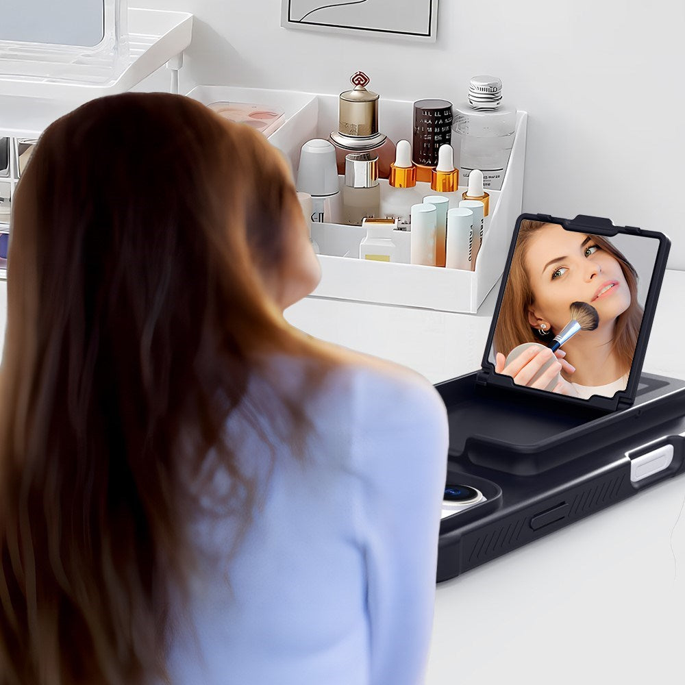 Indeni kortholderen finder du også et diskret spejl – perfekt til et hurtigt tjek af hår eller makeup. Når spejlet er slået ud, kan det desuden også bruges som en kickstand, således telefonen kan stå af sig selv - perfekt til f.eks. at se film.