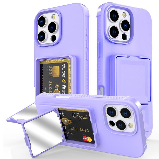 iPhone 16 Pro Fleksibelt Plastik Bagside Cover m. Kortholder & Indbygget Spejl - Lilla