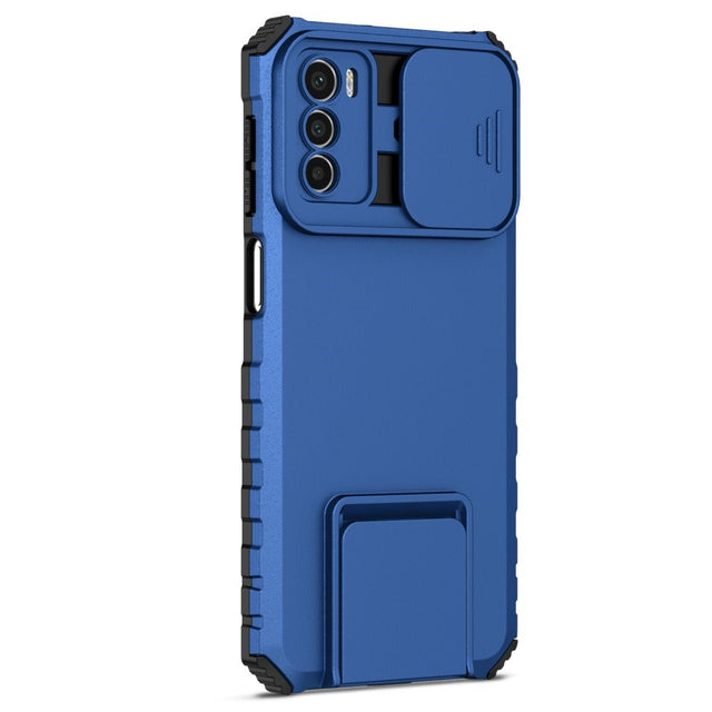 Motorola Moto G42 Håndværker Bagside Cover m. Kickstand & Cam Slider - Blå