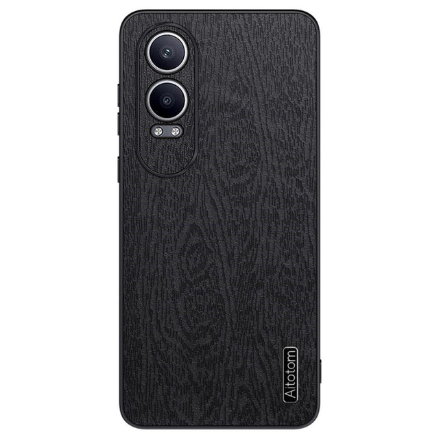 OnePlus Nord CE4 Lite (5G) Læderbetrukket Plastik Bagside Cover - Træ Tesktur - Sort
