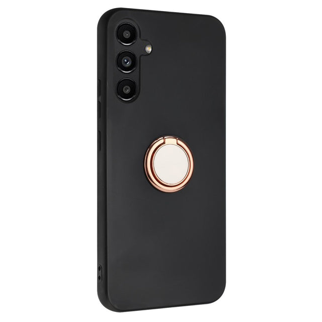 Samsung Galaxy A16 Fleksibelt Plastik Bagside Cover m. Magnetisk Ring Kickstand - Sort m. Rose Gold Ring