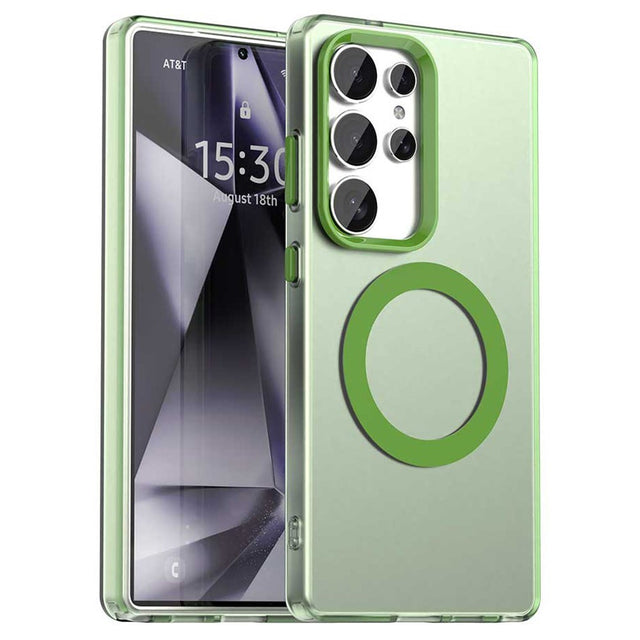 Samsung Galaxy S25 Ultra Hybrid Plast Mobil Cover - MagSafe Kompatibel - Gennemsigtig / Grøn