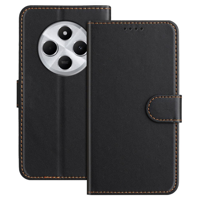 Et helt klassisk Xiaomi Redmi 14C / Poco C75 Flip Cover med indbygget kortholder og ståfunktion, alt sammen lavet i flot kunstlæder.
