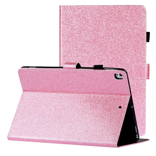 iPad 10.2" (2021 / 2020 / 2019) Glitter Cover m. Flipstander & Kortholder - Glitter Pink