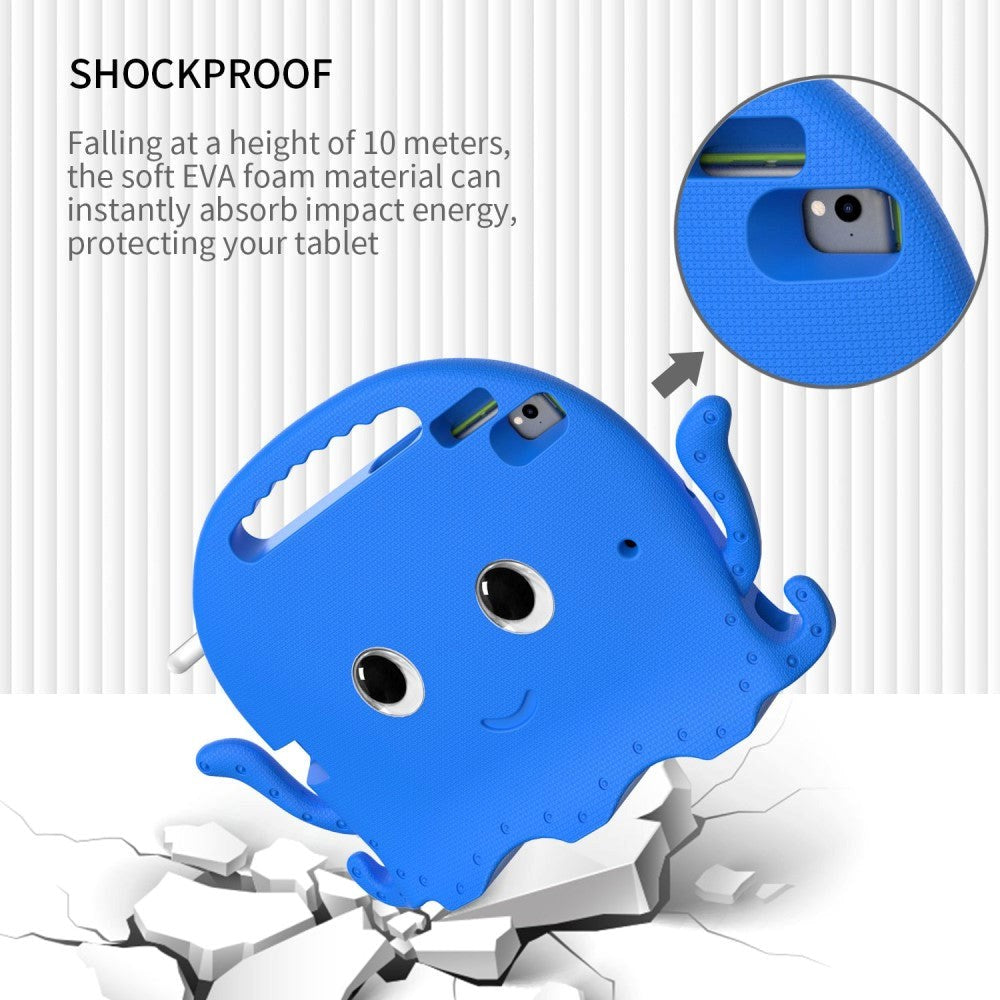 iPad (2018) / iPad (2017) / iPad Air 2 / iPad Pro 9.7" EVA Børnecover m. Skulderstrop - Blæksprutte Tema - Blå er i restordre og vil blive sendt, så snart det er på lager igen.