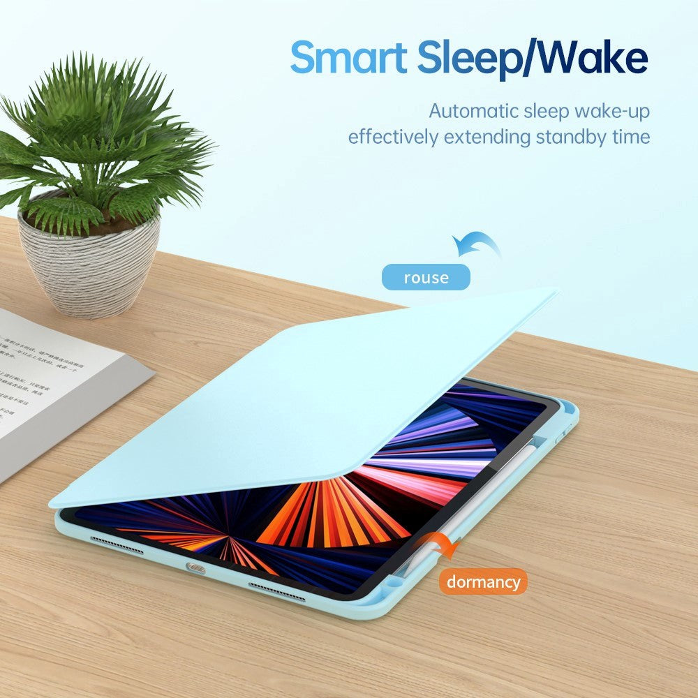 En smart funktion er den indbyggede "vågeblus", der automatisk sætter skærmen i dvale, når coveret foldes sammen om iPad Air 10.9-11" (2025-2020) / Pro 11" (2022-2018). Når du åbner coveret, tændes skærmen igen.
