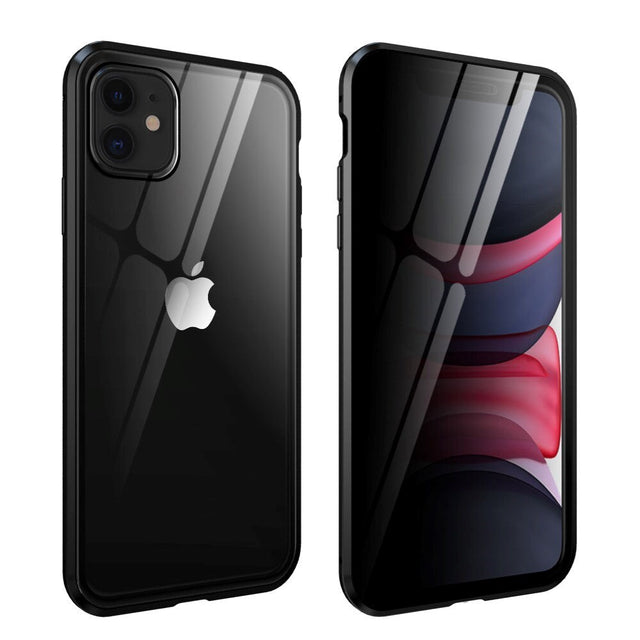 iPhone 11 Magnetisk Metal Cover m. Glasforside & Bagside m. Privacy Glass - Sort5712577011956 |