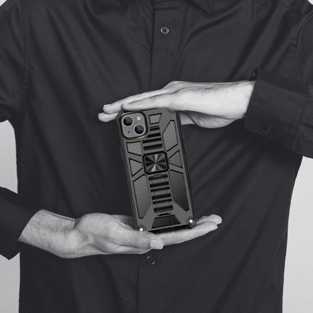iPhone 14 Hybrid Håndværker Bagside Cover m. Kickstand & Magnet - Sort