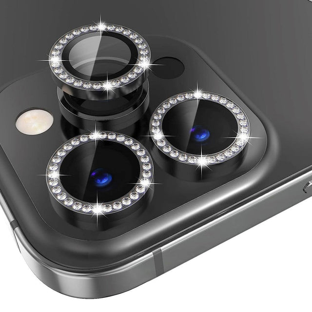 iPhone 14 Pro / 14 Pro Max Kamera Beskyttelse m. Rhinsten - Sort